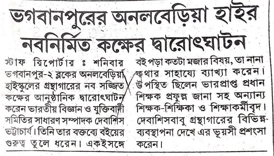 স্কুলের নতুন লাইব্রেরি রুমের দ্বারোৎঘাটোন করলেন যুক্তিবাদী সমিতির সাধারণ সম্পাদক