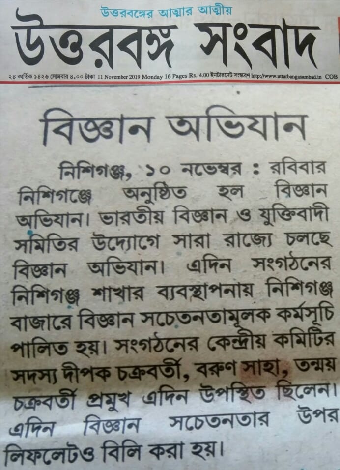 উত্তরবঙ্গ সংবাদ, ১১ নভেম্বর ২০১৯